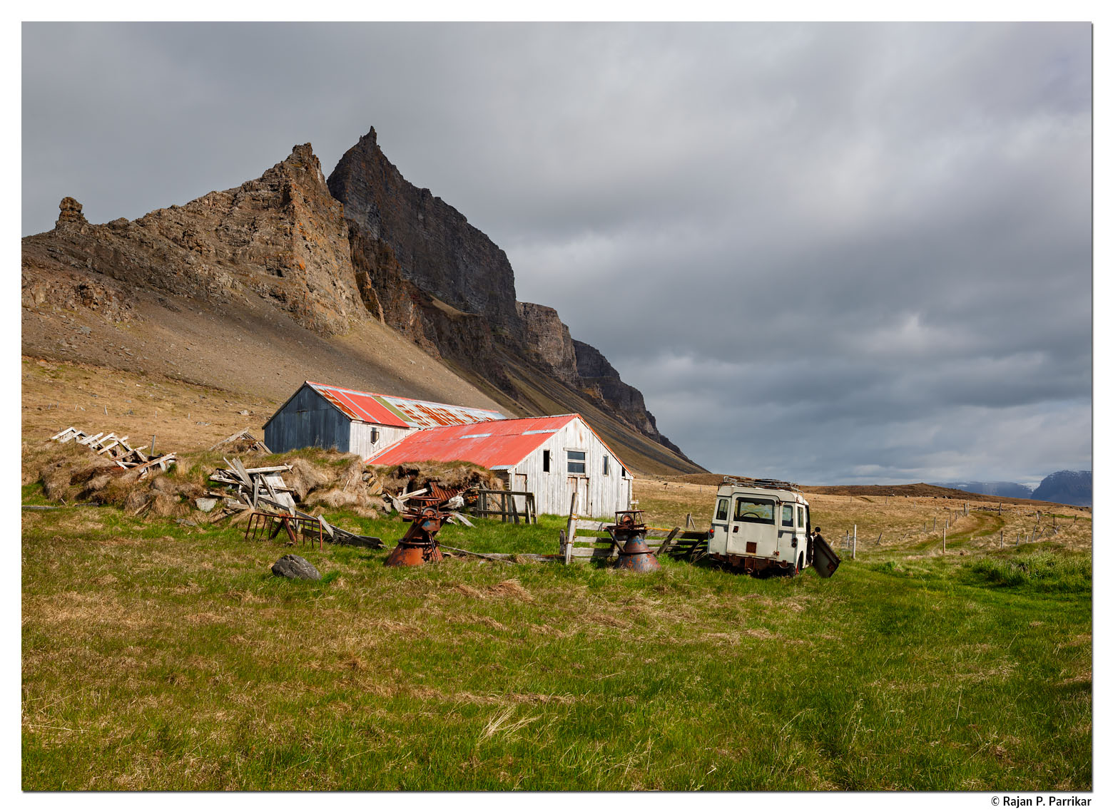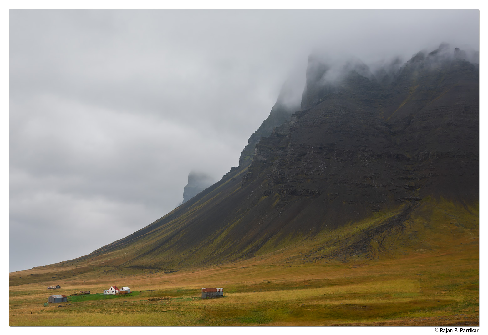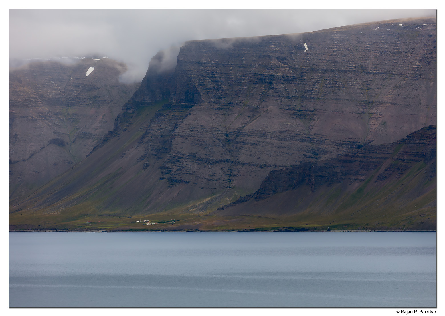 The abandoned farm of Lokinhamrar sits directly beneath Skjöldur, the towering cliff that seals off the northern shore of Arnarfjörður. Until a rough road was pushed through in the 1970s, this was among the most inaccessible farms in the Westfjords of Iceland; the last permanent residents left in 1989, and today the house wakes only in summer.