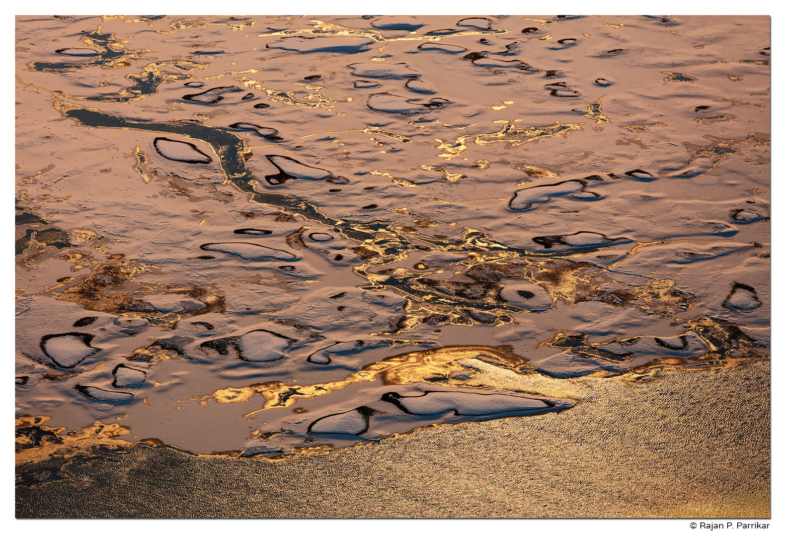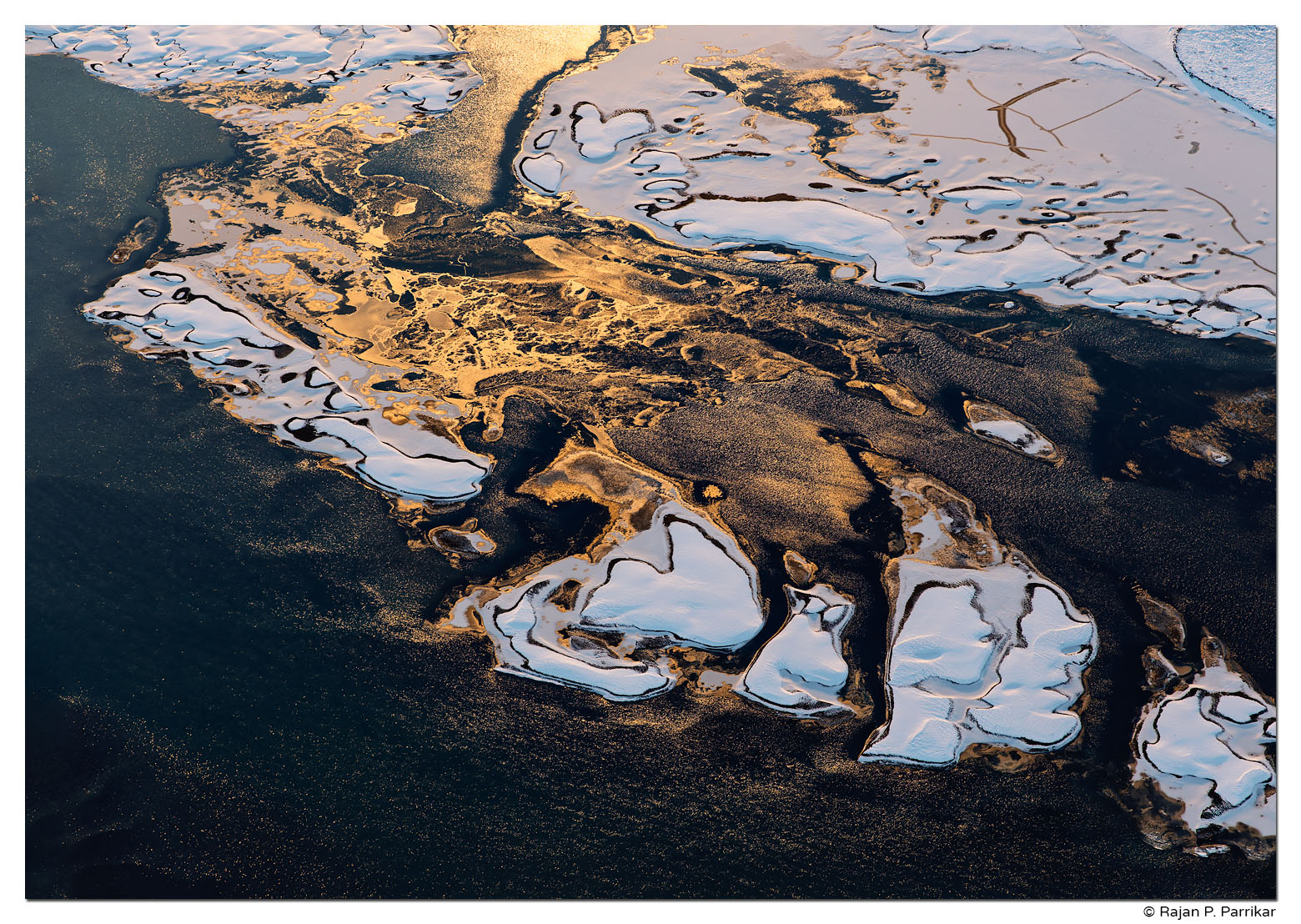 A continuation of winter study: river, shore, and ice turned metallic. Part 1 is here.