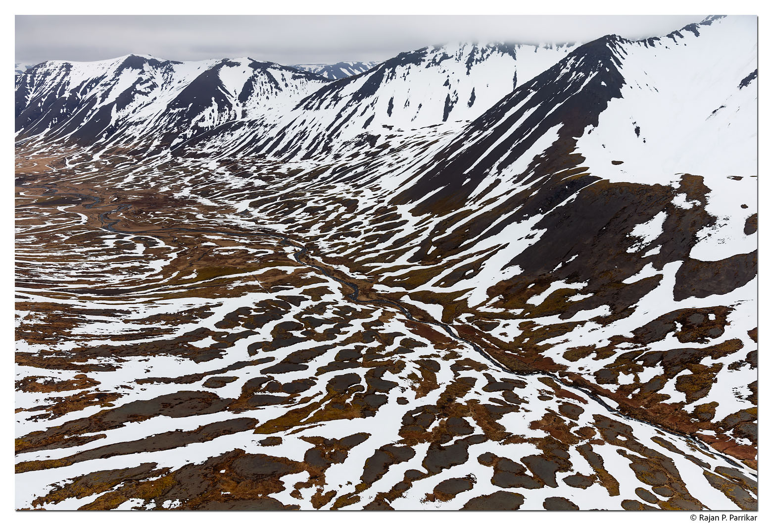 Tiger in DýrafjörðurApril 17, 2026 Snow writes in stripes. Dýrafjörður, Westfjords of Iceland. The first two frames are from Galtardalur; the third Þursaskál, by the Þingeyri airstrip. Galtardalur 5DS, 24-70L f/2.8 II Þursaskál 5DS, 24-70L f/2.8 II by Rajan ParrikarCategories: Iceland, LandscapeTags: 24-70L f/2.8 II, Aerial, Canon 5DS, Dýrafjörður, Fjord, Galtardalur, Helicopter, Vestfirðir, Westfjords, Winter, Þingeyri, Þursaskál