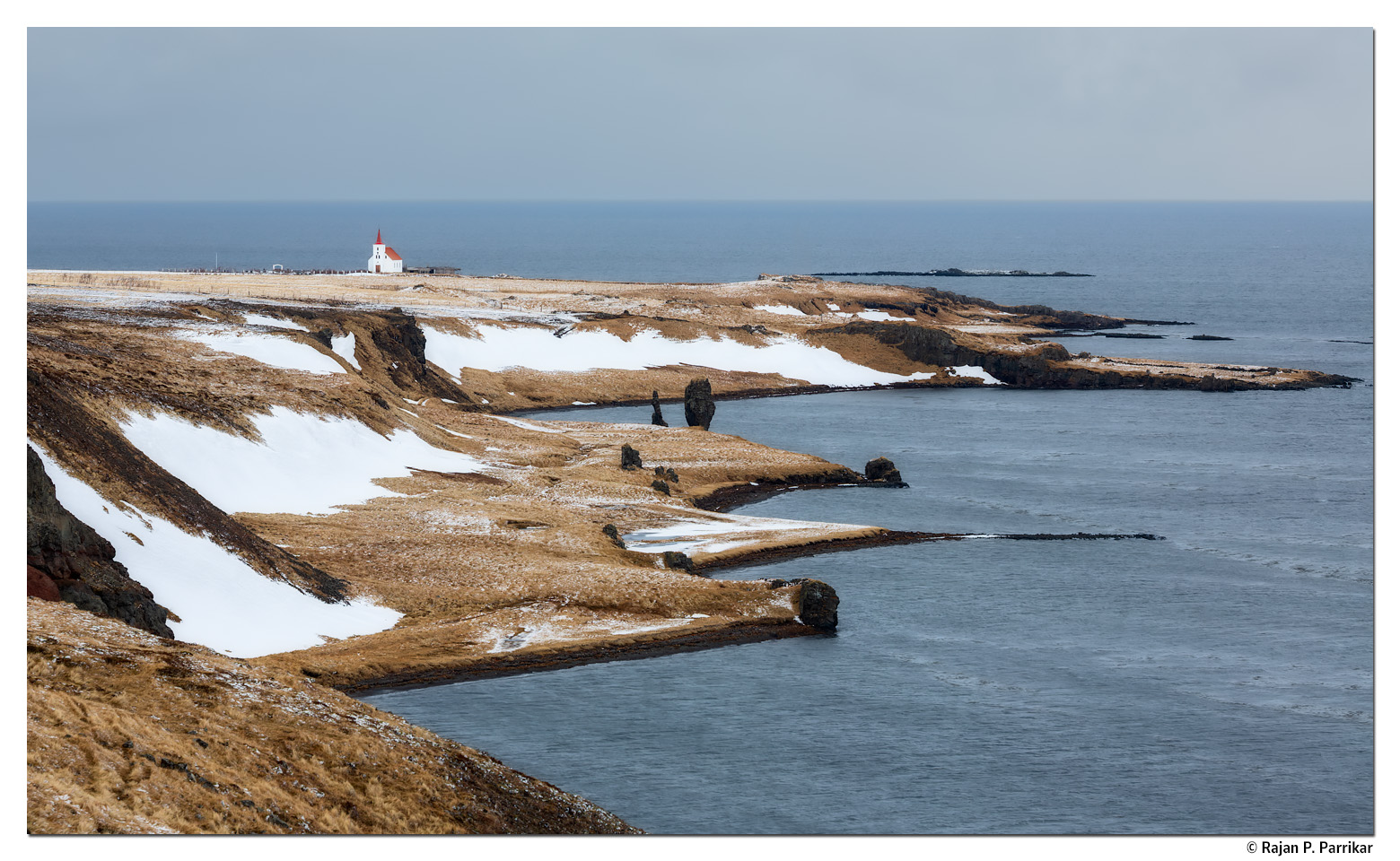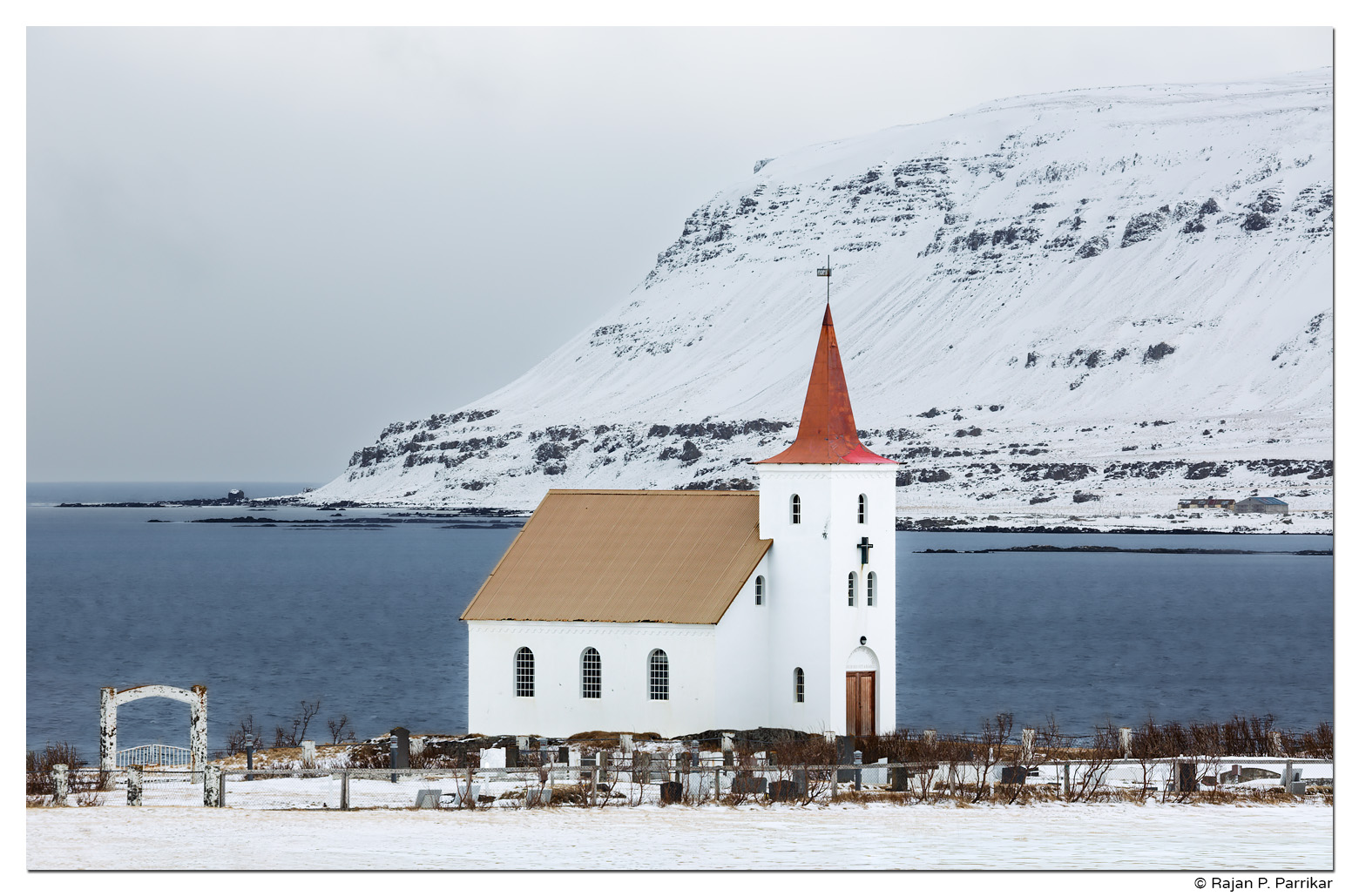 KollafjarðarneskirkjaApril 3, 2026 Good Friday. Winter in Kollafjörður, Strandir. Kollafjarðarneskirkja (1909) stands by the sea, spare, unadorned. Church in Kollafjarðarnes5D Mark III, 100-400L IS II by Rajan ParrikarCategories: Architecture, Iceland, Landscape, ReligionTags: 100-400L IS II, Canon 5D Mark III, Church, Fjord, Kollafjarðarneskirkja, Kollafjörður, Strandir, Westfjords, Winter