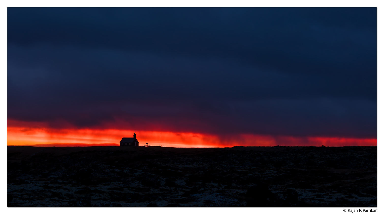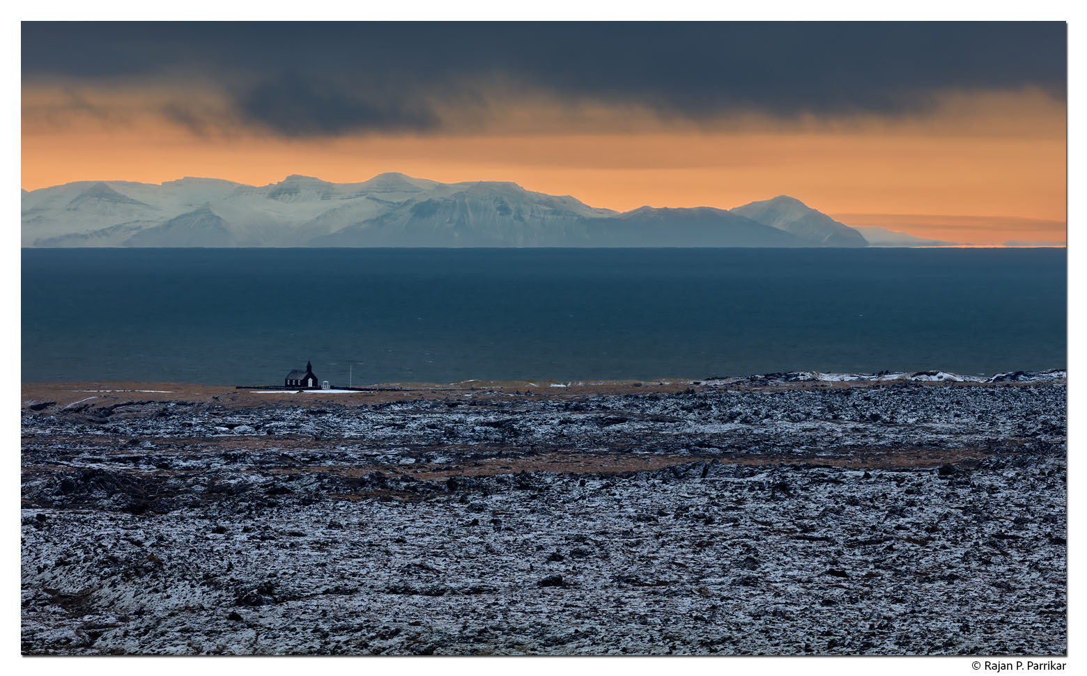 Two views of Búðakirkja in Snæfellsnes on a winter’s morning.